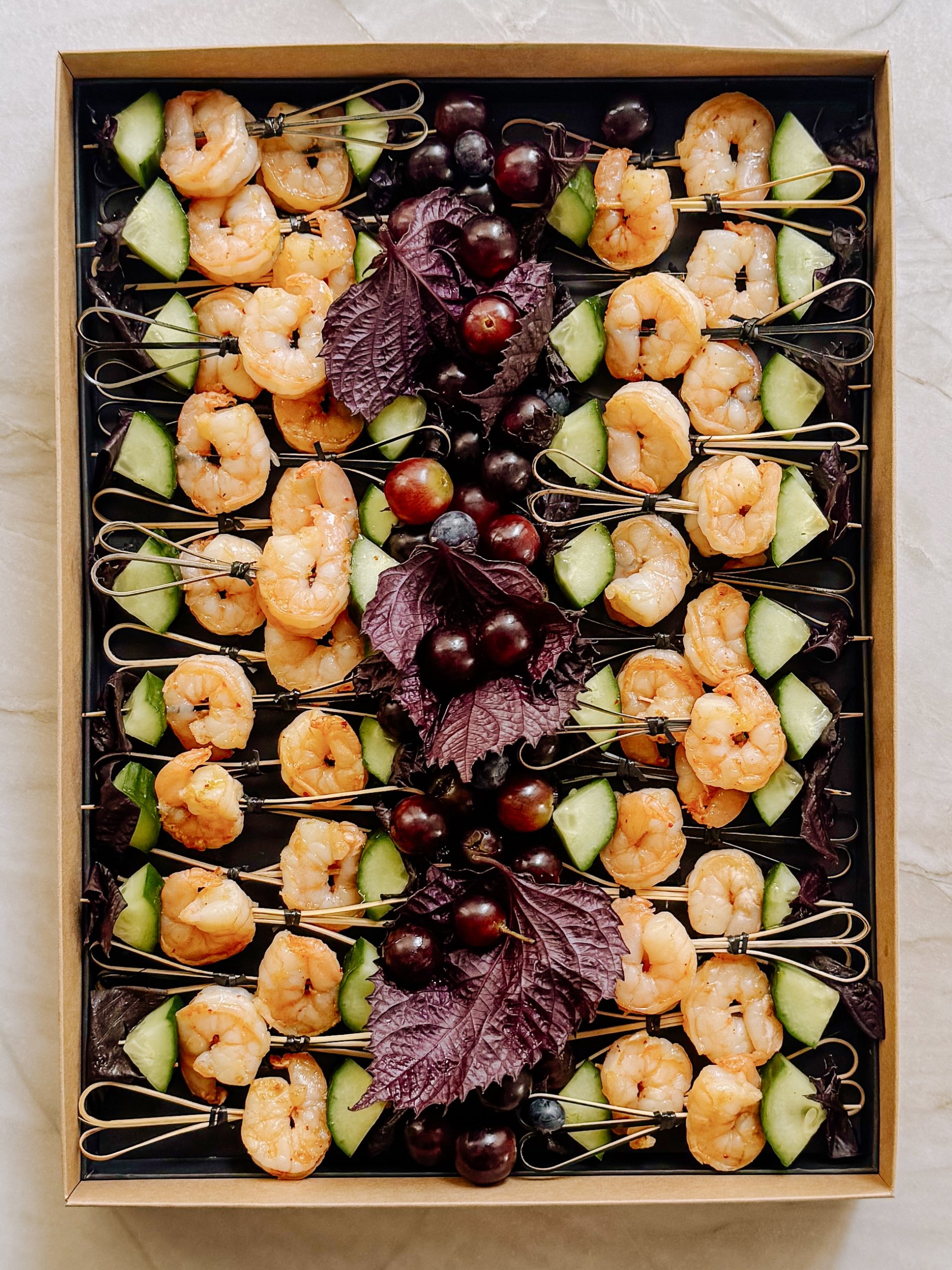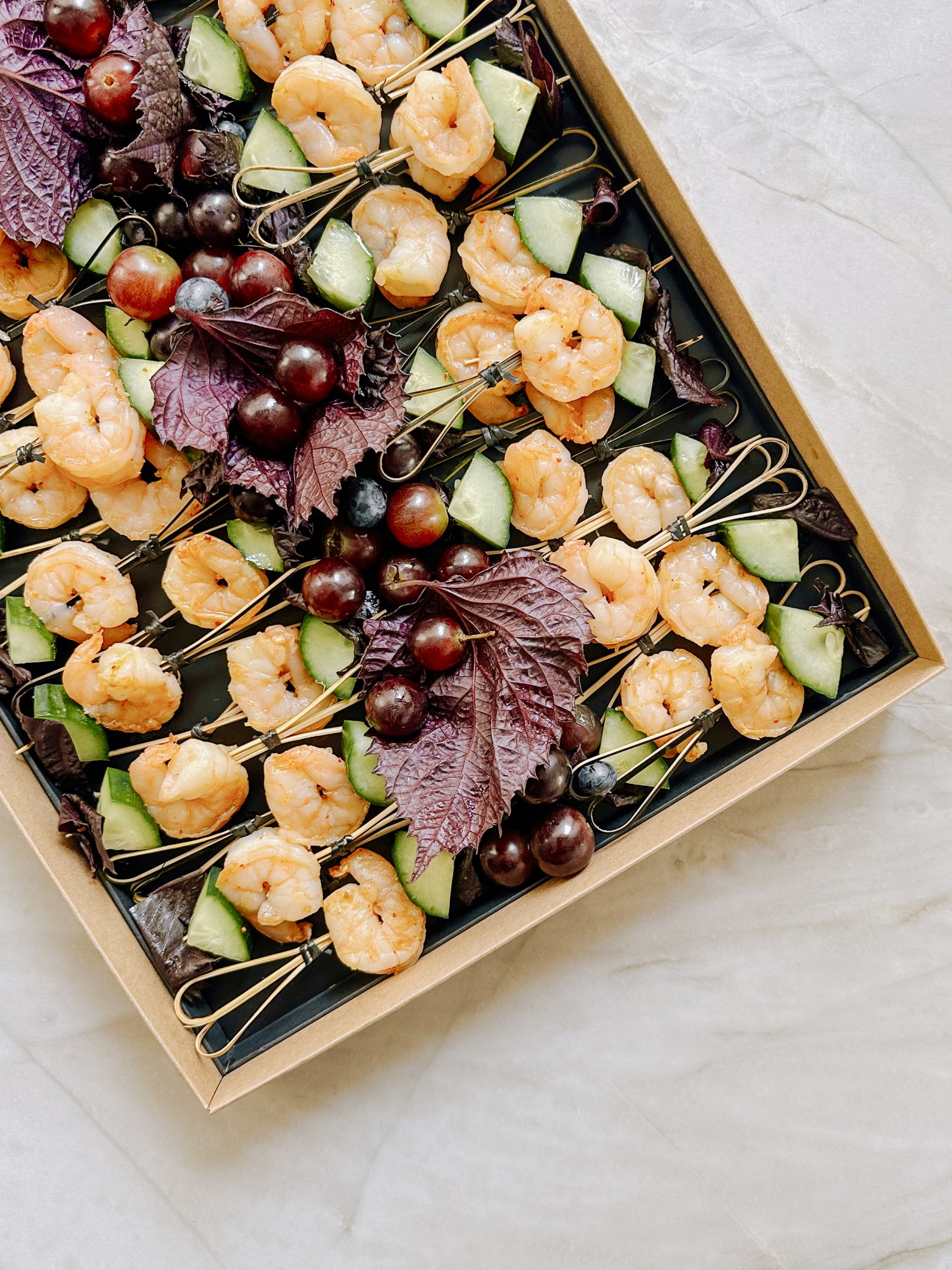 Le Grand Brochettes Crevette propose des bouchées fraîches et équilibrées, où la délicatesse de la crevette marinée se mêle à des notes acidulées et légèrement salines. Le croquant des légumes et la fraîcheur des herbes viennent compléter cet ensemble léger et savoureux.